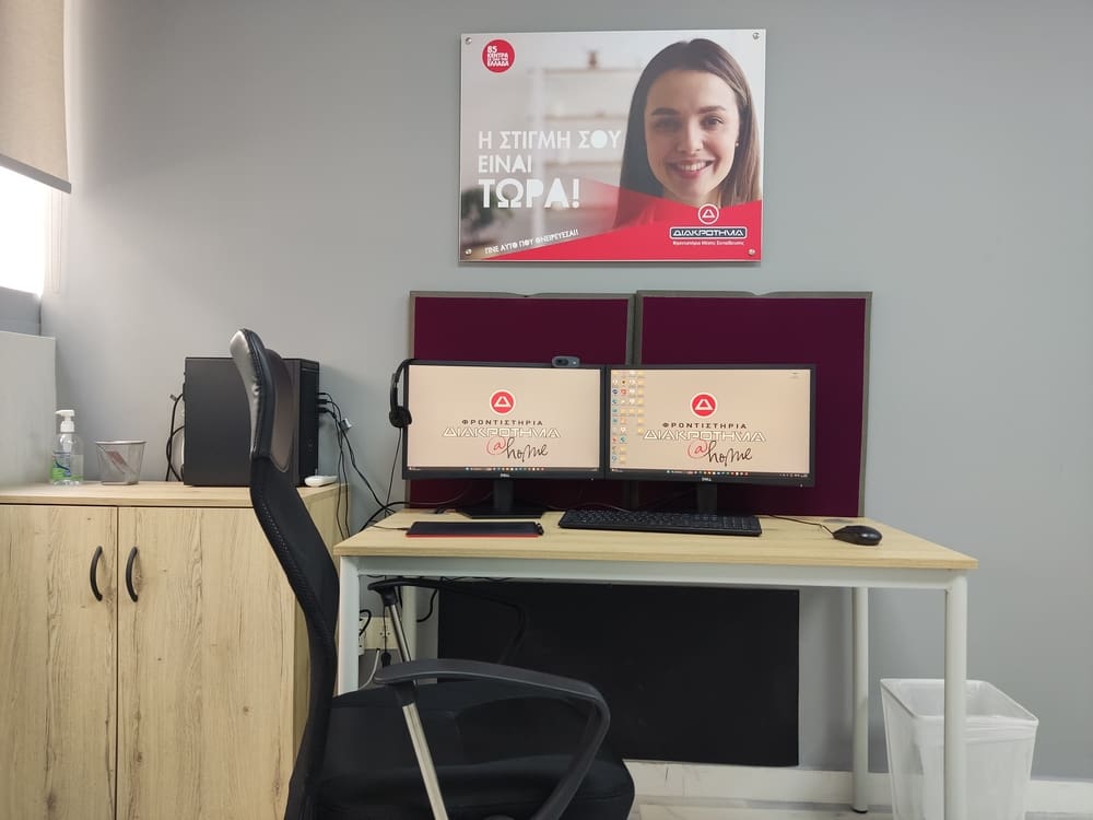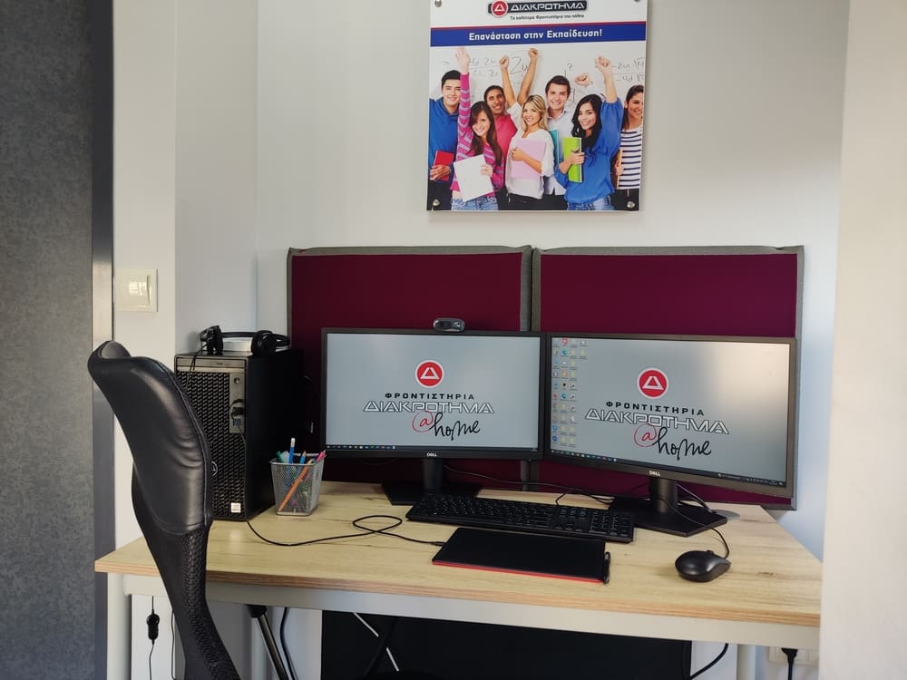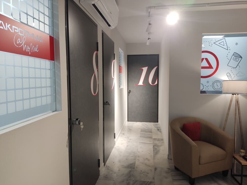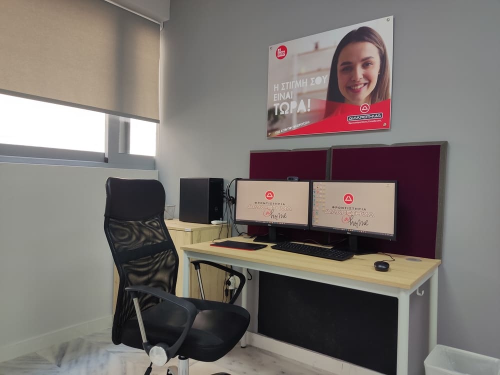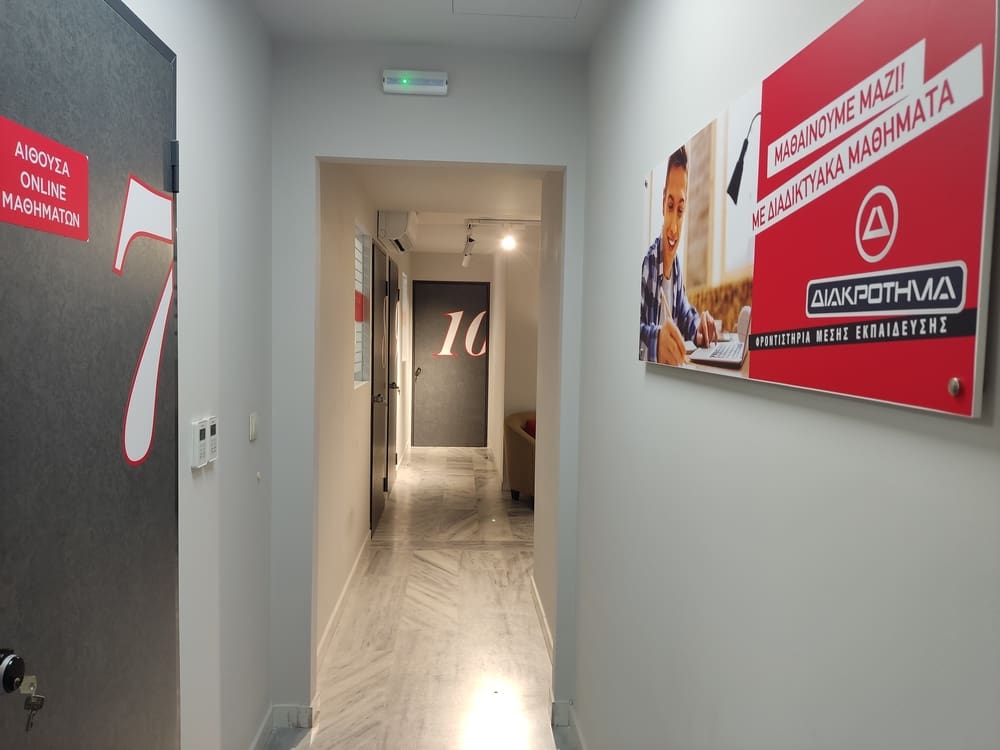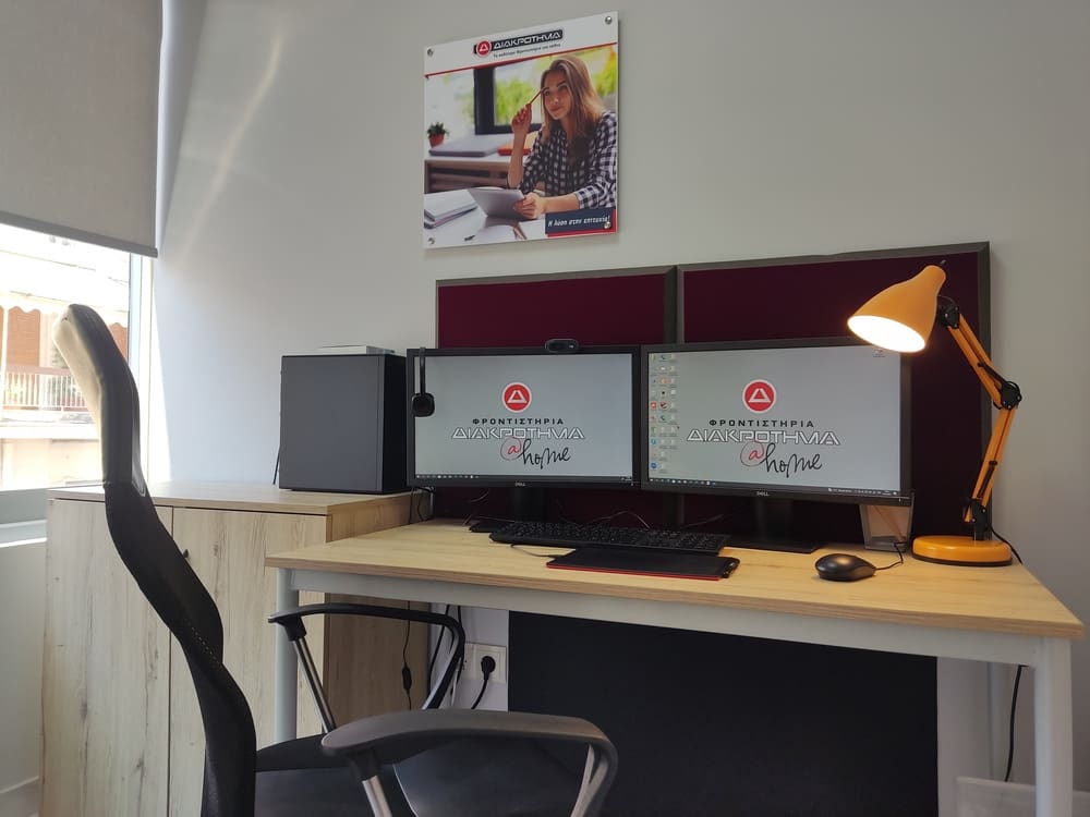 Το ΔΙΑΚΡΟΤΗΜΑ@HOME στεγάζεται σε έναν υπερσύγχρονο χώρο στο κέντρο του Πειραιά, ειδικά διαμορφωμένο για τις ανάγκες της διαδικτυακής διδασκαλίας. Οι καθηγητές μας διδάσκουν σε άνετες, τεχνολογικά εξοπλισμένες αίθουσες που εξασφαλίζουν υψηλής ποιότητας εκπαιδευτική εμπειρία για τους ίδιους και κυρίως για τους μαθητές μας. Οι εγκαταστάσεις περιλαμβάνουν: